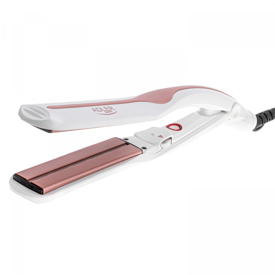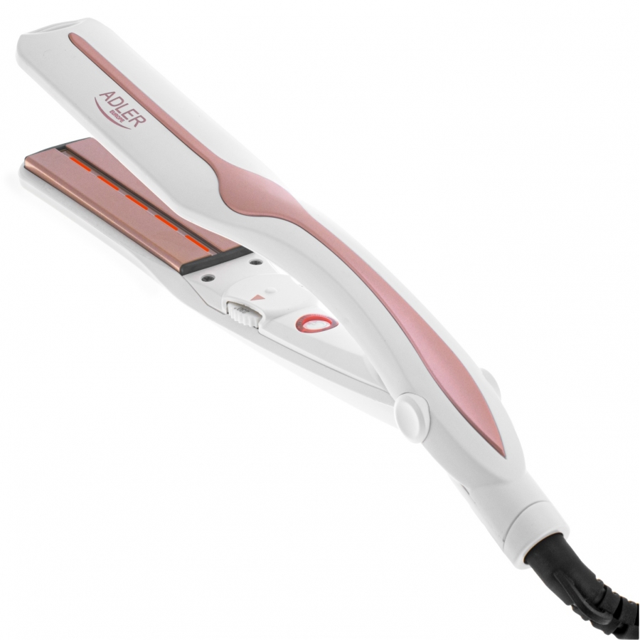 Žehlička na vlasy Adler AD 2318 spája moderný dizajn s pokročilou infračervenou technológiou, vďaka ktorej ponúka bezpečné, účinné a profesionálne tvarovanie vlasov v pohodlí domova. Keramické doštičky sa rovnomerne nahrievajú, zaručujú hladké a lesklé vlasy bez poškodenia a infračervená technológia im dodáva prirodzený lesk a zabraňuje krepovateniu.
