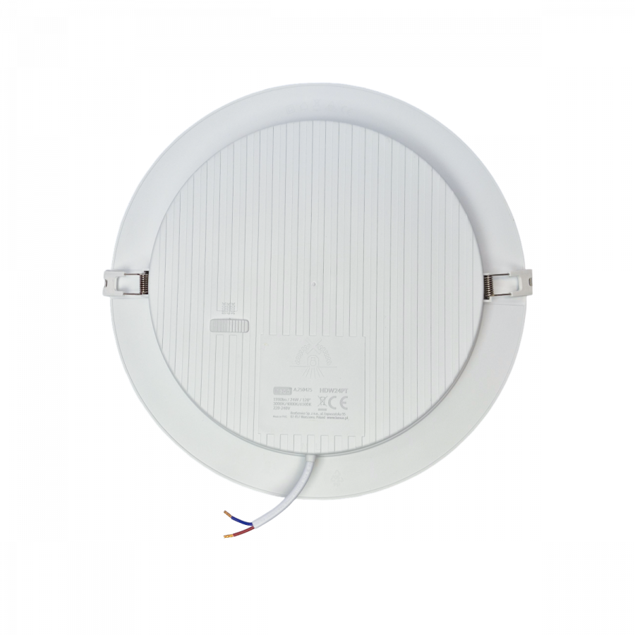 Používateľ si môže zvoliť farbu svetla: teplú (3000 K), neutrálnu (4000 K) alebo studenú (6500 K). Svietidlá HDW–PT sa vyznačujú uhlom svietenia 120°, indexom podania farieb CRI >80 a rýchlym časom nábehu – menej ako 0,5 s. Vďaka triede krytia IP20 sú ideálne do suchých priestorov.