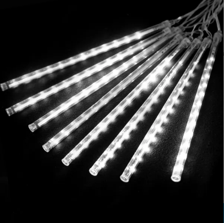 LED Vianočné osvetlenie - cencúle 30cm, 192 diód, 5m, IP44, solárne - Studená biela