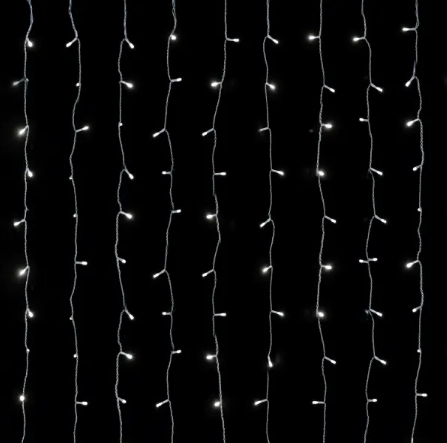 LED Vianočné osvetlenie - záves, 192 diód, 1.5x1.2m, IP44, 230V - Studená biela - 8 módov svietenia