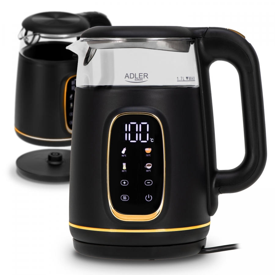 Rýchlovarná sklenená kanvica s reguláciou teploty - 1,7L , čierno-zlatá - 2200W
