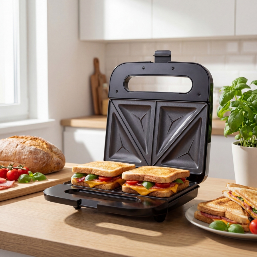 Pripravte si chutné a chrumkavé sendviče so sendvičovačom Adler AD 3076. Vďaka jednoduchej obsluhe a praktickým funkciám je tento sendvičovač nepostrádateľným pomocníkom v každej kuchyni. Ideálny pre milovníkov rýchlych snackov, ktoré pripravíte za pár minút!