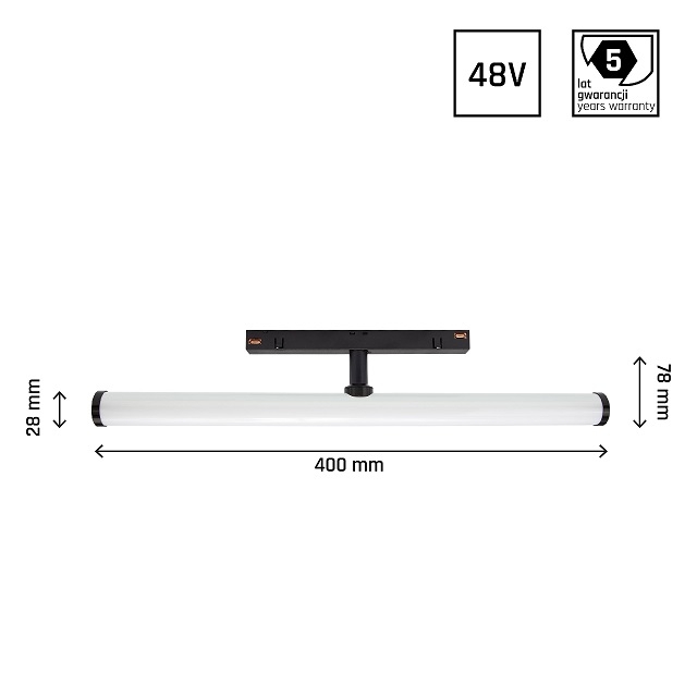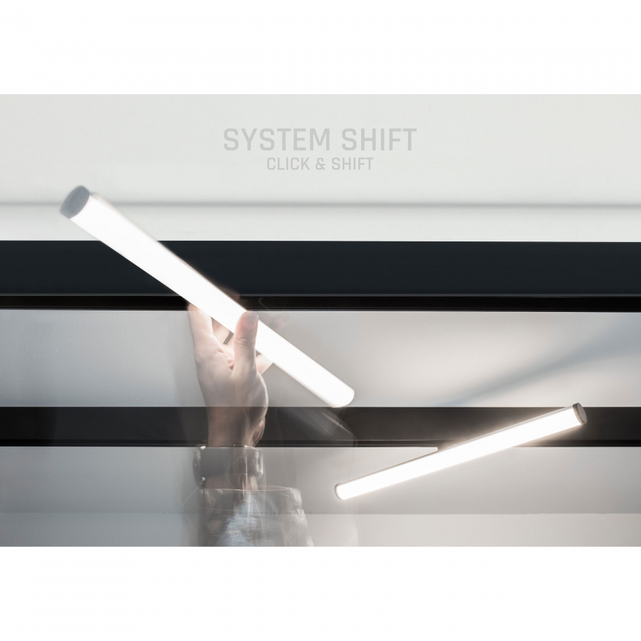 SYSTEM SHIFT - dráhové svietidlo BEAM, výkon 12 W, vysoká svetelná účinnosť 117 lm/W. Je vyrobený z kvalitných komponentov, s 5 ročnou zárukou. Má tiež veľmi vysoký index podania farieb RA>90.. Určené pre montáž na koľajnicu.