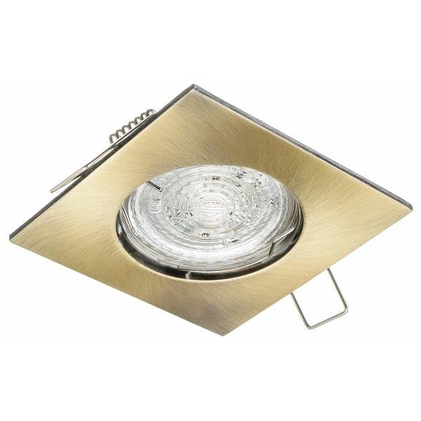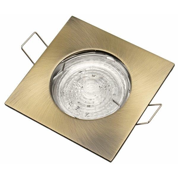 Elegantné zapustené svietidlo s hranatým kovovým rámom v odtieni antik mosadz.