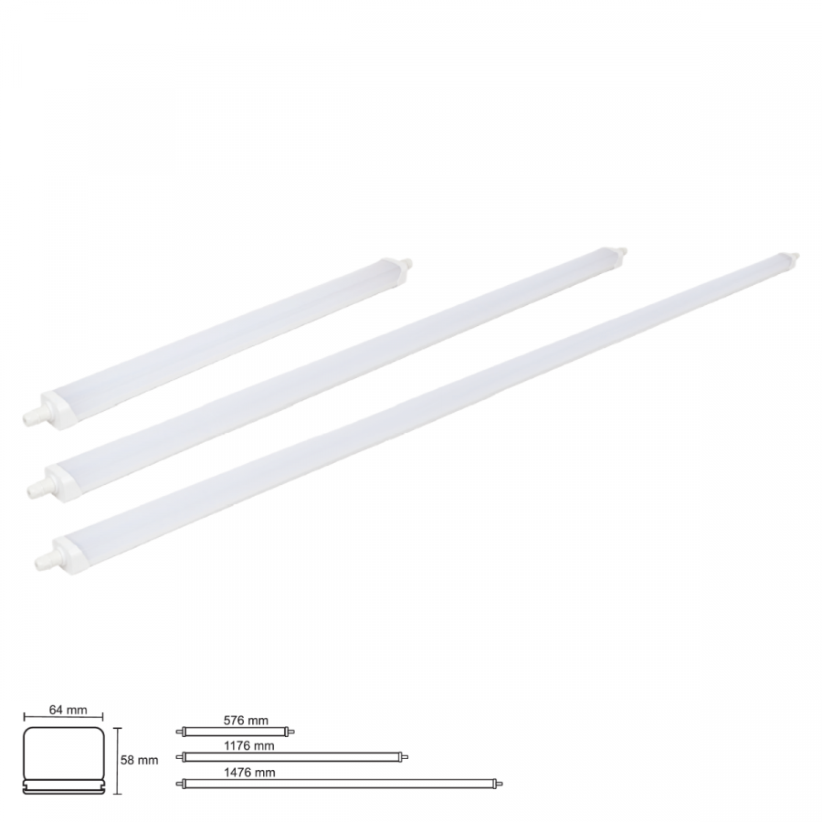 Svietidlá Lumax LINEA S sú moderné, hermetické LED svetelné zdroje navrhnuté pre náročné pracovné podmienky. Vďaka vysokej triede krytia IP65 a mechanickej odolnosti IK08 sú ideálne do výrobných hál, skladov, garáží, dielní, ale aj na vonkajšie použitie.